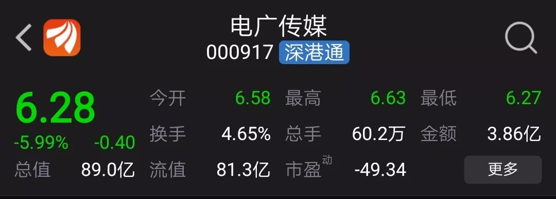 电广传媒成立于1998年,于1999年3月在深交所挂牌上市,是全国首家文化传媒业上市公司,被誉为“中国传媒第一股”。目前电广传媒的市值为89亿,如果被ST后股价腰斩就很可能缩水40亿,这对整个集团来说是不能接受的。