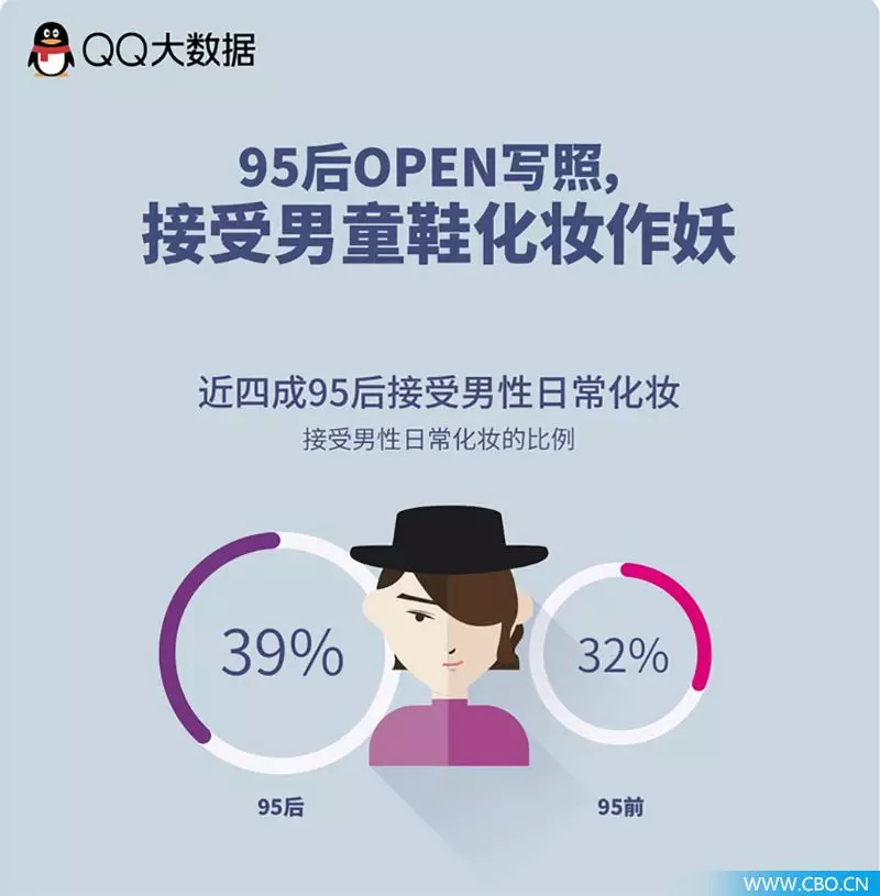根据QQ大数据《95后审美观》的数据显示,近四成95后接受男性日常化妆,越来越多的男性在面霜、香水上花费更多,使其自身看起来更完美。