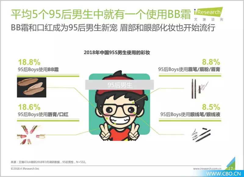 艾瑞咨询发布的《2018年种草一代·95后时尚消费报告》则预测,到2019年,中国男性化妆品消费量的年均增长率将达到13.5%,远高于全球化妆品男性使用量的5.8%。