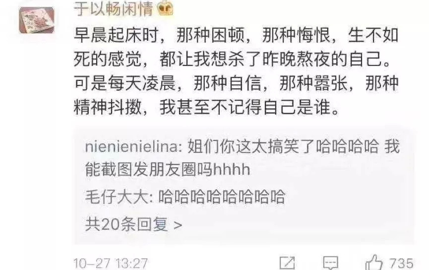 注解:积极废人,指那些“爱给自己立flag,但永远做不到的人;尽管心态积极向上,行动却宛如废物”,他们往往会在间歇性享乐后恐慌,时常为自己的懒惰自责。