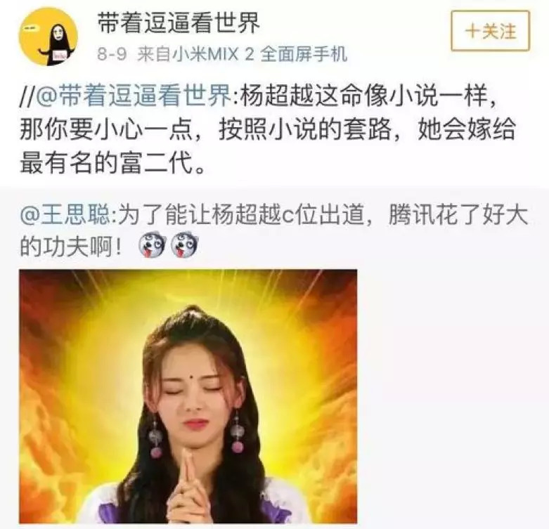 王思聪转发杨超越之后,网友回复: