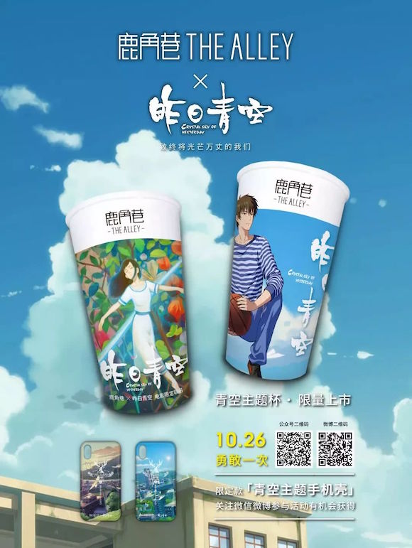 加速开店形成规模,抢占市场、建立品牌影响力,不断创新外,鹿角巷还用与知名品牌合作的方式,提升了山寨门槛。比如,跟《昨日星空》合作推出联名杯、手机壳等周边产品。通常情况下,这些动作山寨店是不敢跟进的。