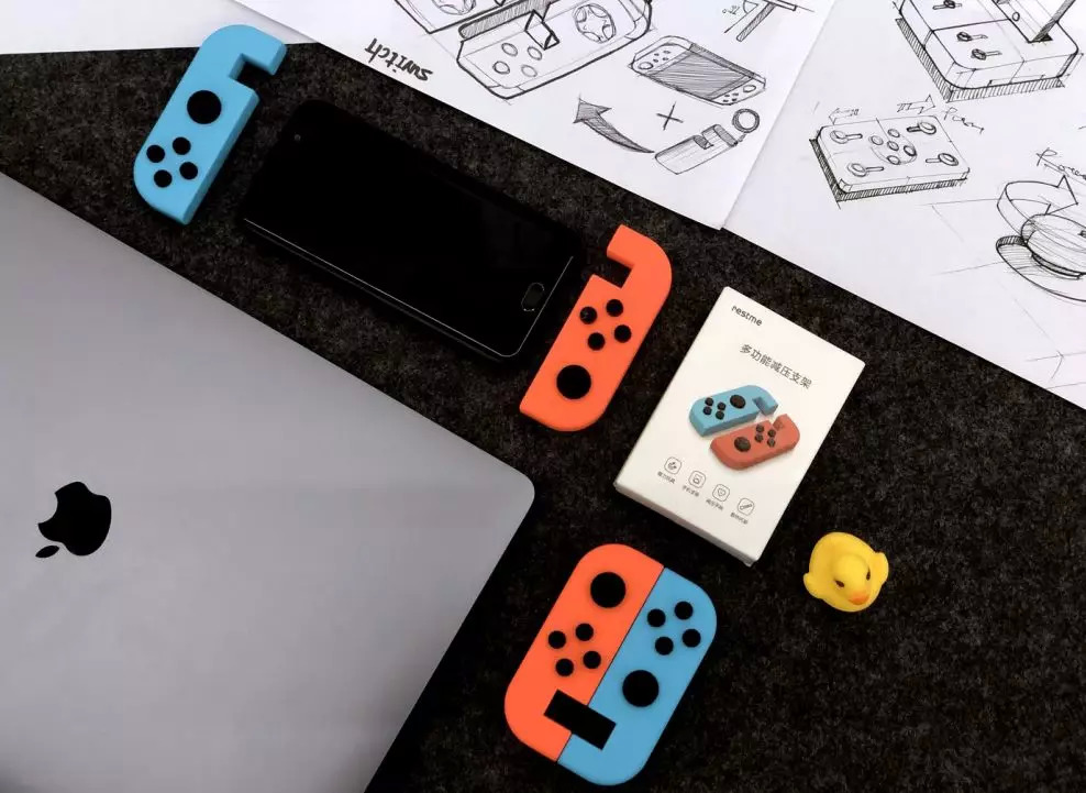 游戏机讨喜的元素与手机支架、电脑托架功能设计在一起,变成了一个创意十足的解压玩具~