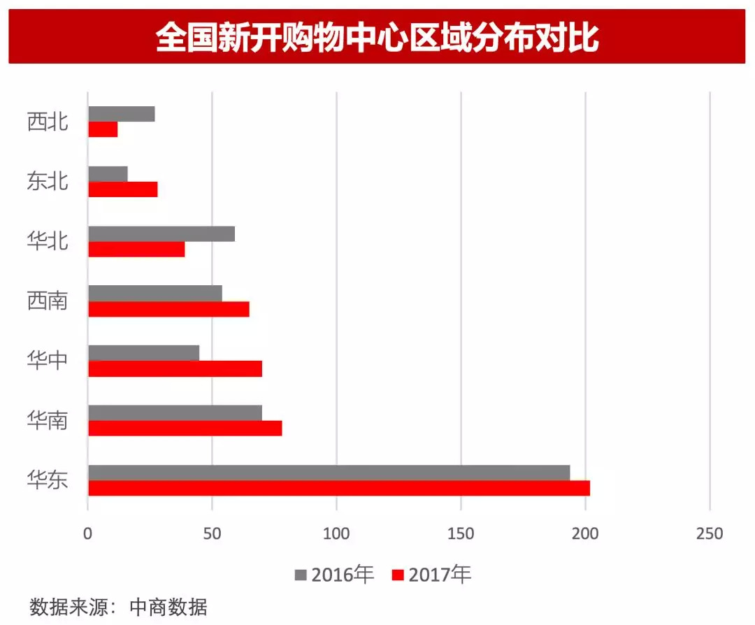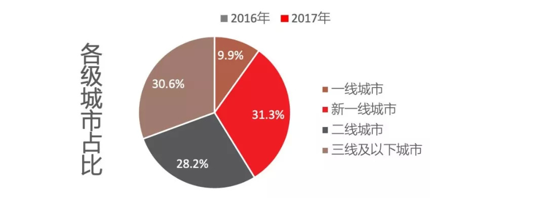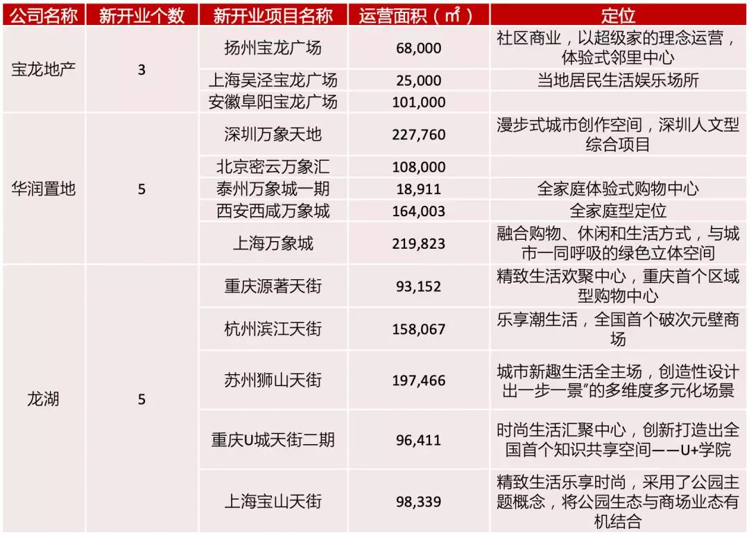 总体看来,新增商业项目集中在华东、华中、华南、西南四个区域,华北、西北区域整体新增能力不足。其中,重庆、杭州、长沙、武汉商业活跃度较高,新商业城市发展迅速,在2017财年实现了数量、体量双增长。