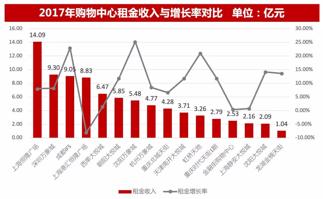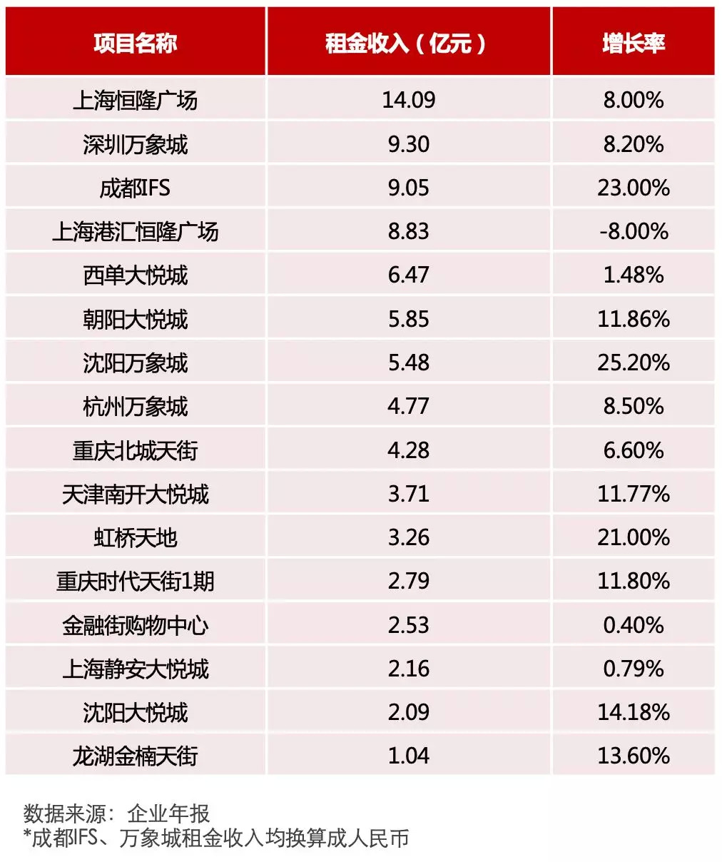 恒隆广场业绩的增长主要得益于其2016年对品牌以及商场内部设施的有效调改,经过调改,其营业额增长26%,租金增长8%。增长率出现下降的购物中心为上海港汇恒隆广场,主要由于2017年内部设施调整,导致部分品牌闭店所致,预计2018年收入将会有大幅度增长。