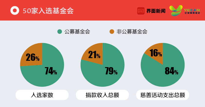 纵观整个榜单,50家入选基金会2017年捐款收入总额为114亿元,2017年慈善活动支出总额为124亿元,与上年相比分别增长12.9%、10.7%。捐款收入总额的增幅略高于慈善活动支出的增幅。