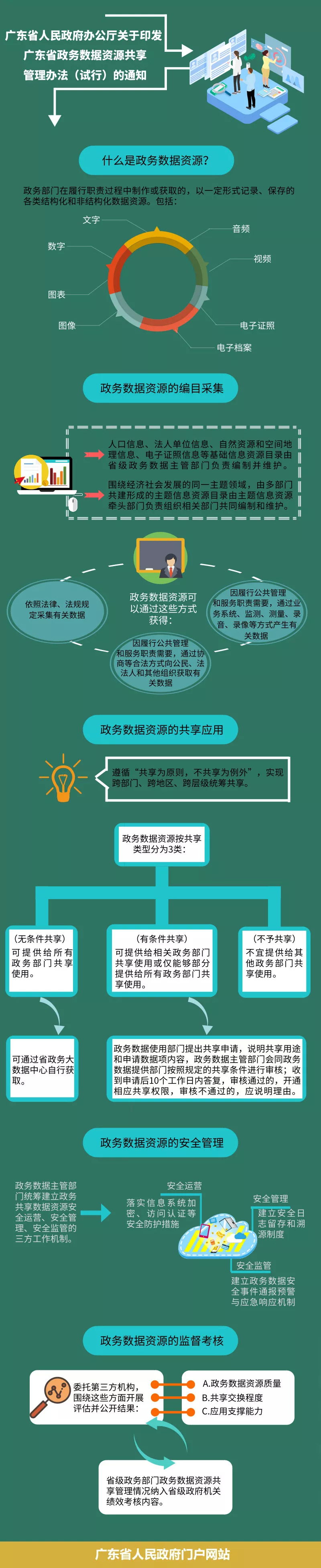 “希望通过办法解决以前各部门数据共享中角色不清晰的问题,同时明确所有共享的数据资源归政府所有。”广东省政务服务数据管理局处长陈峻华介绍,政务数据共享最终是要实现企业、群众办事少提交材料、避免重复提交材料,因此各政府部门要以共享优先的原则来获得政务数据,如果共享数据库里有这个数据了,原则上讲就不能再通过其他方式重复采集。政务数据共享还要解决以往部门间数据共享流程特别冗长、复杂、繁琐的问题,实现数据及时高效共享,让共享难不再是普遍存在的问题。