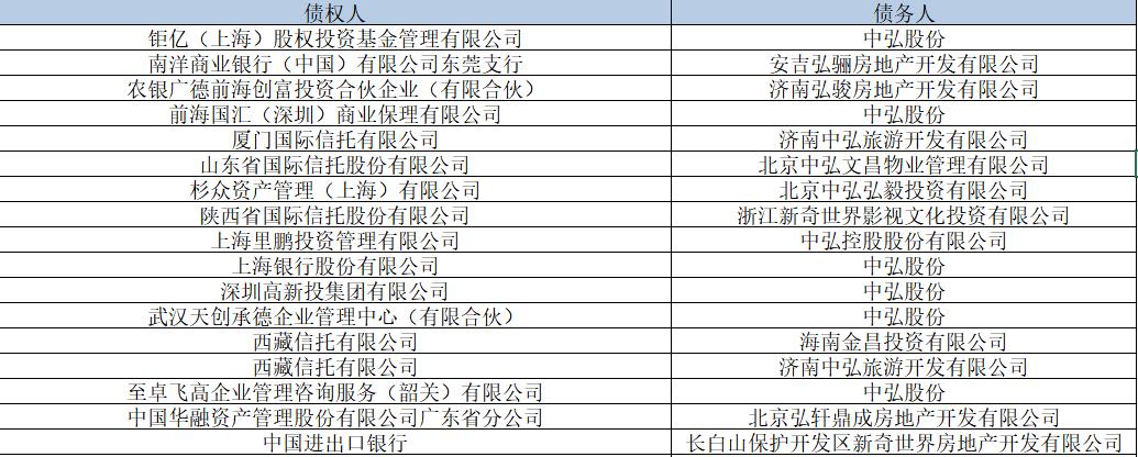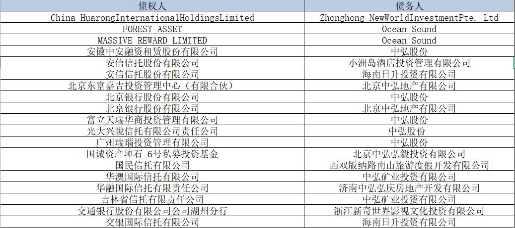 中弘退披露的债务逾期数据显示,上述12家信托公司涉及的债务余额合计68.41亿元。其中,债权人安信信托涉及的债务余额最高,两笔借款共计21亿元。其次为中建投信托,涉及债务余额达14.82亿元。