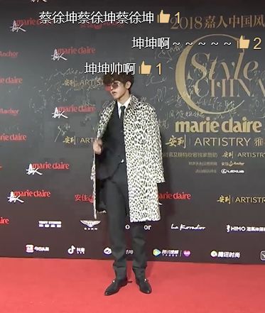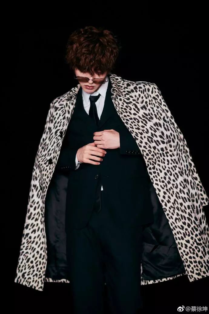 蔡徐坤身穿豹纹大衣,内搭西服套装,精修照骗还是颇为复古时尚滴。