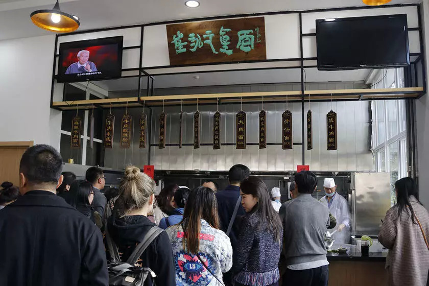 崔永元的面馆排着长队。