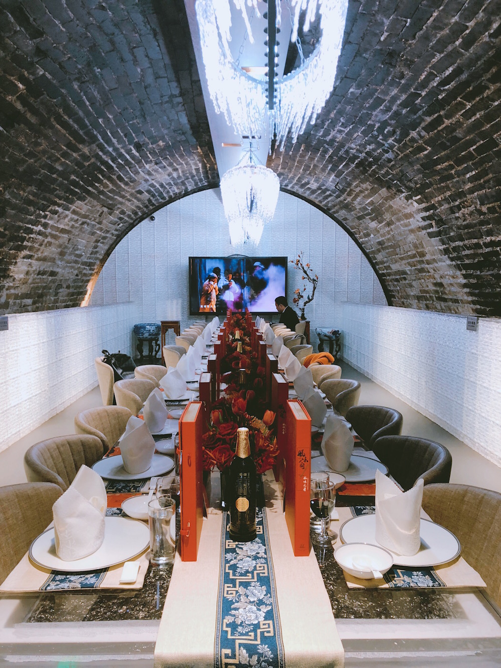 晚宴地点在慈宁宫附近的“冰窖”——这个名字听上去就让人觉得有点冷。朱红色的宫墙内部,是厚厚青砖砌成的拱形建筑,这里从前是皇家存放冰块的地窖,距今已经有300年的历史。现在,这里已经改造成了可以容纳300人左右的餐厅和咖啡馆,并在2017年初正式对外开放。