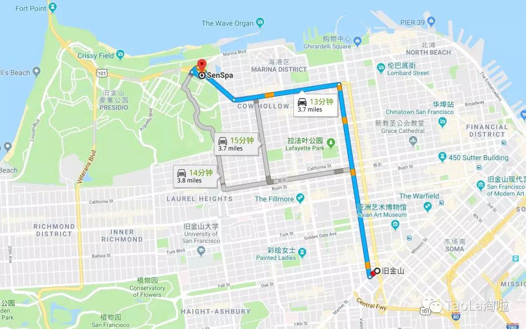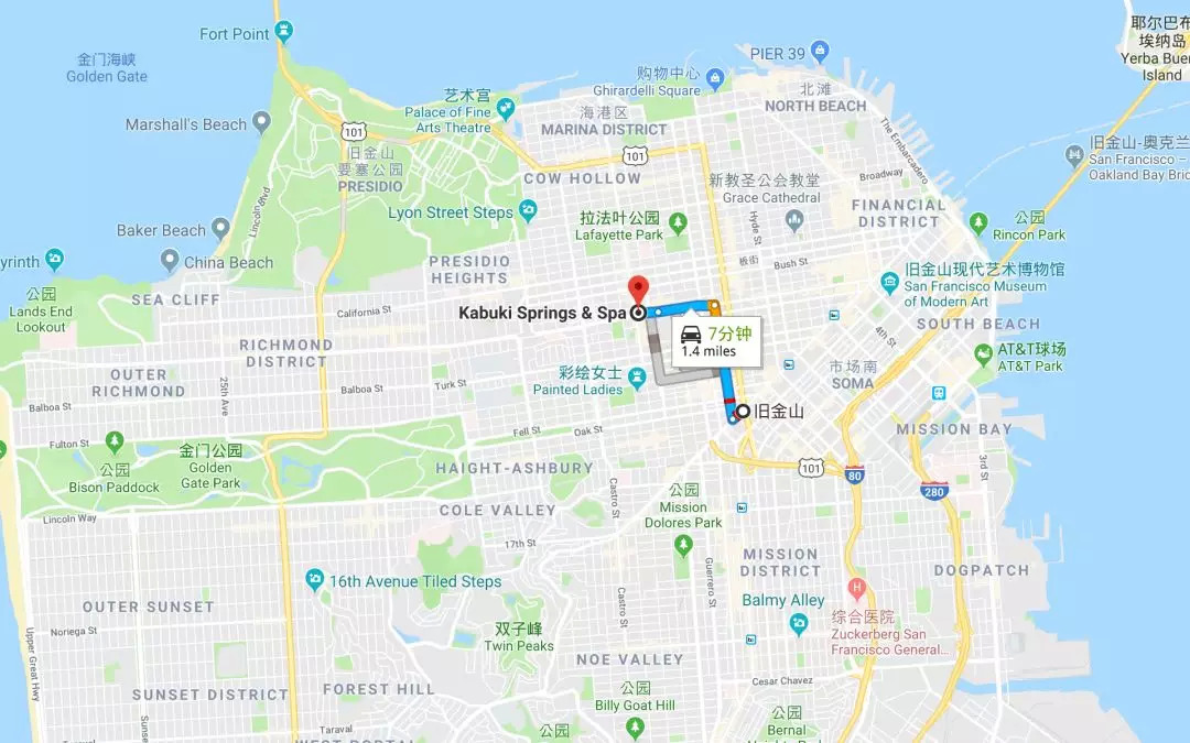 1750 GEARY BLVD, SAN FRANCISCO, CA 94115旧金山驾车出发10分钟内到达