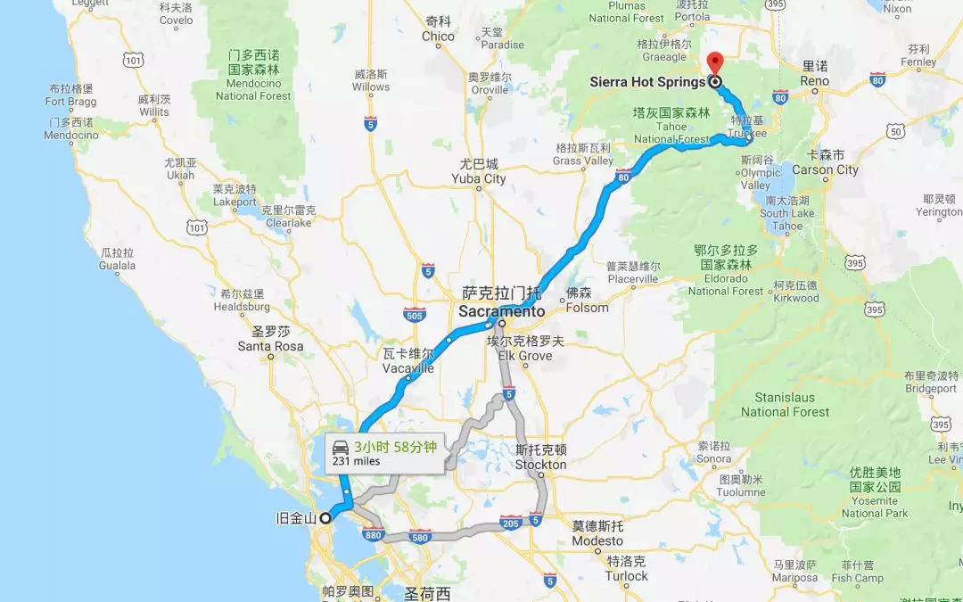 521 Campbell Hot Springs Rd,Sierraville, CA96126旧金山驾车出发约4小时到达