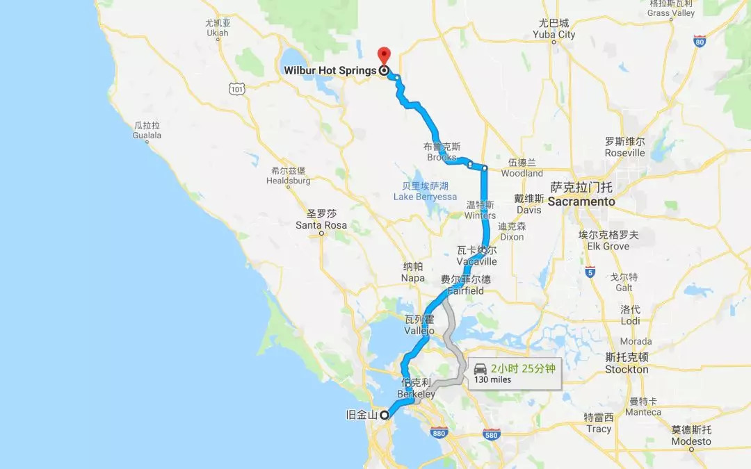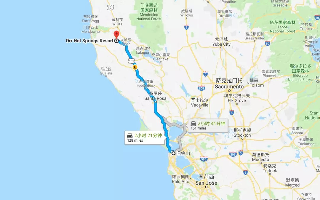 旧金山驾车出发约2.5小时到达