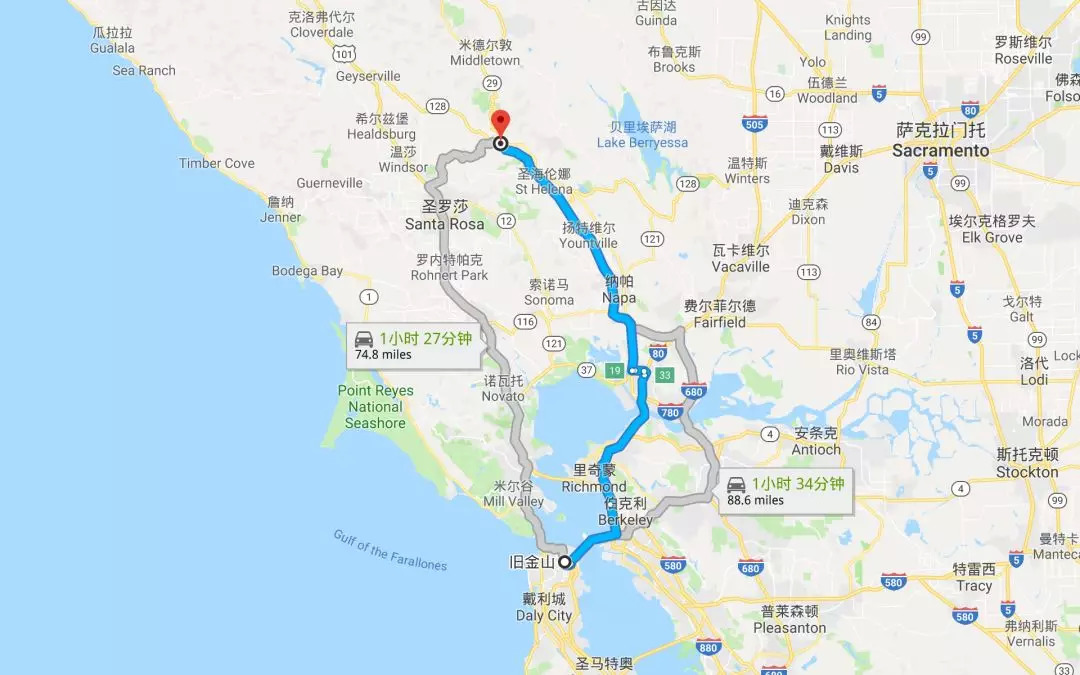 旧金山驾车出发约1.5小时到达