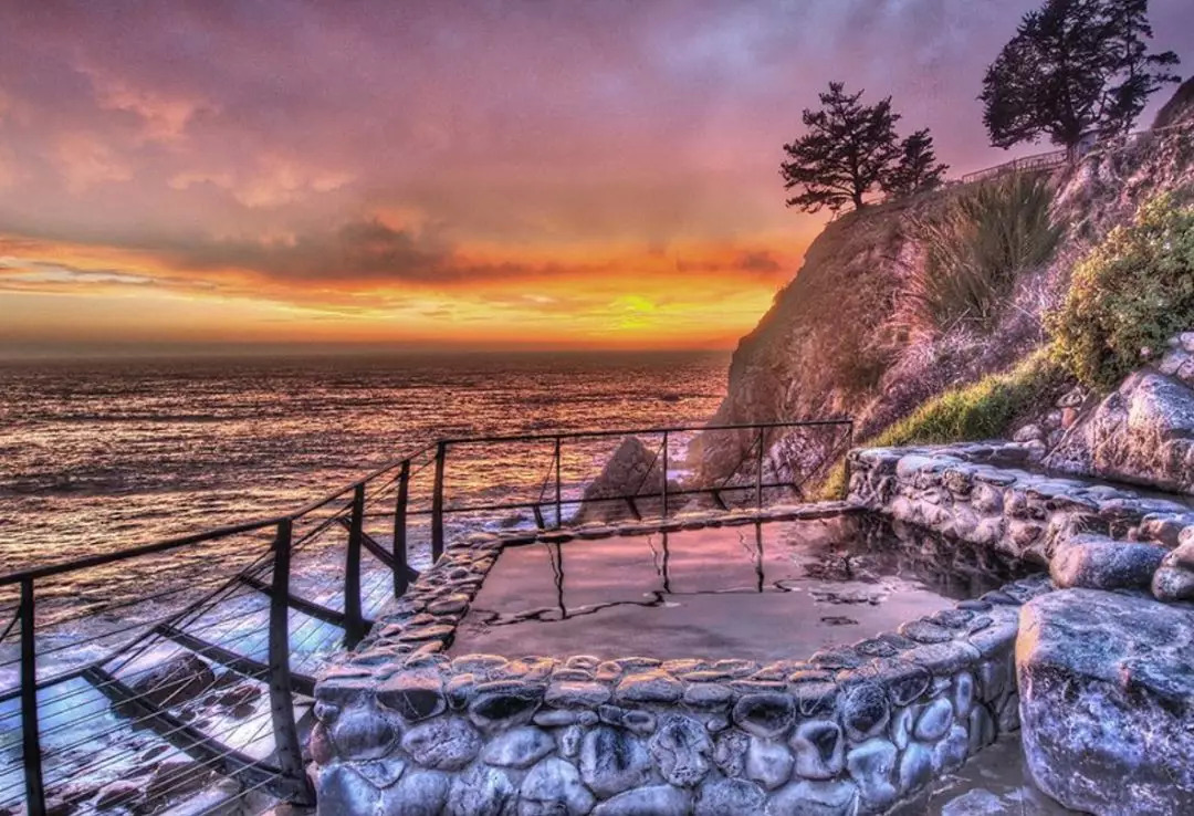依山傍海的Esalen温泉水疗胜地,高悬于临海峭壁之上,毗邻一号公路,吸引着络绎不绝想要逃离尘嚣的人们,可以一遍泡汤,一遍聆听海浪的声音。鲍勃·迪伦、安塞尔·亚当斯、迪帕克·乔普拉都曾来过这家水疗中心。