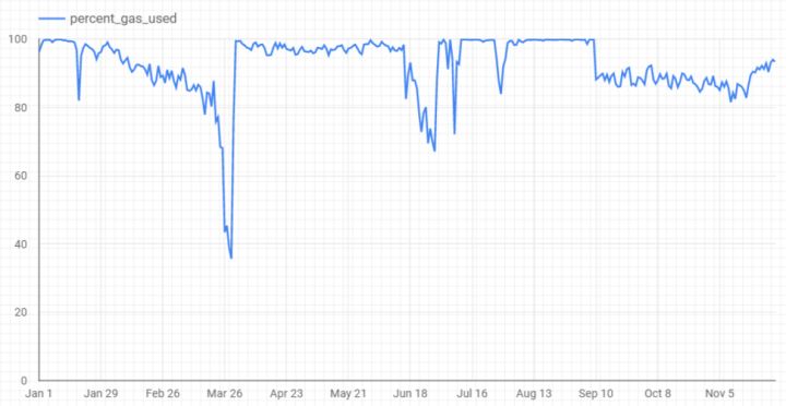 然而,排名第二的空区块开采矿场 Etherdig 并没有使用这种策略来适应价格波动,它只是将挖空区块作为自己的主要模式。他们在 2018 年整年中平均开采了 86% 的空区块(相比之下 F2Pool_2 的这一比例为 5.5%)。
