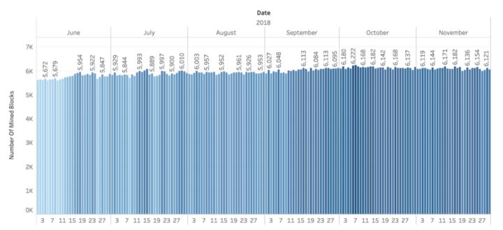 从过去六个月中的网络高级视图中显示,区块的数量保持在相同的水平,每天处理的交易数量也保持在大约 60 万。