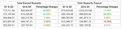 下面显示了按照算力计算的排名前五的矿池的一些指标,对于其在今年上半年和下半年的指标进行了比较。