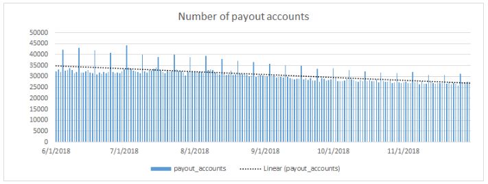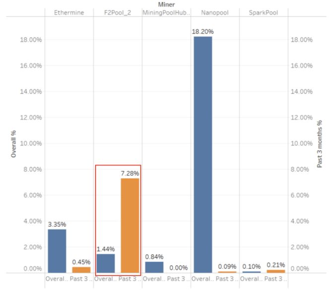 他们的一个共同点就是他们所支付的账户数量明显减少了,减少最多的是 F2Pool(鱼池)。