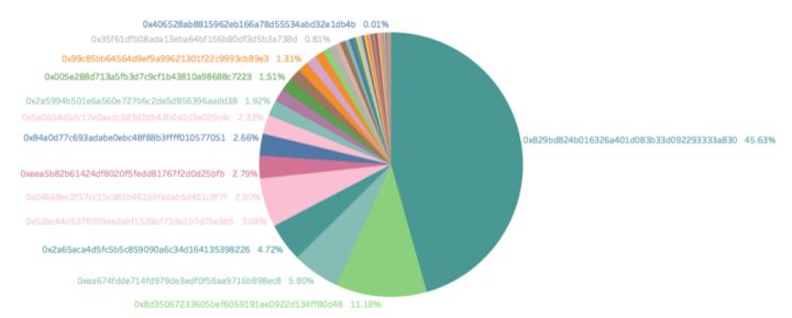 让我们以如今最大的矿池 Ethermine 为例,根据上图显示,其每日支付的数量在不断减少。我们之所以能在其中看到峰值,是因为 Ethermine 对参与挖矿的地址采取的是每周结算一次,这就使得支付日当日的额外交易数量会增长 20%-25%。不过就算包括了那些数值较高的日子,其平均支出仍然维持在 0.15-0.16 以太坊。