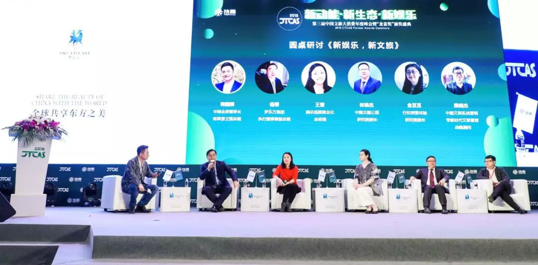 在下午的圆桌研讨环节,围绕 “新娱乐,新文旅”的主题,在华程金旅董事长/前旅游卫视总裁韩国辉的引导下,梦东方集团执行董事兼副总裁杨蕾、腾讯视频商业化总经理王莹、中国主题公园研究院院长林焕杰、行知探索体验研究院院长金豆豆,以及中国文旅实战营销专家/时代文旅首席战略顾问熊晓杰分享了各自的思考和观点,干货满满。