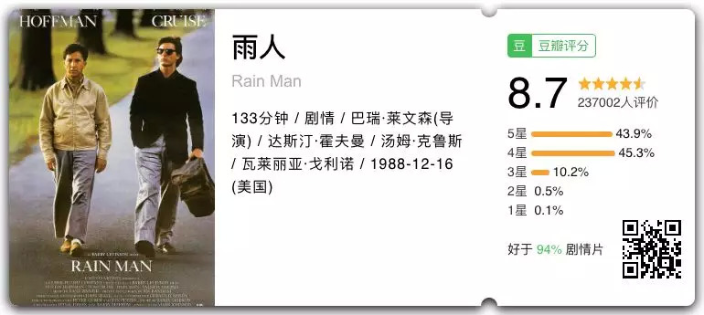 [雨人]几乎可以算是最早让大家了解自闭症患者的一部电影。