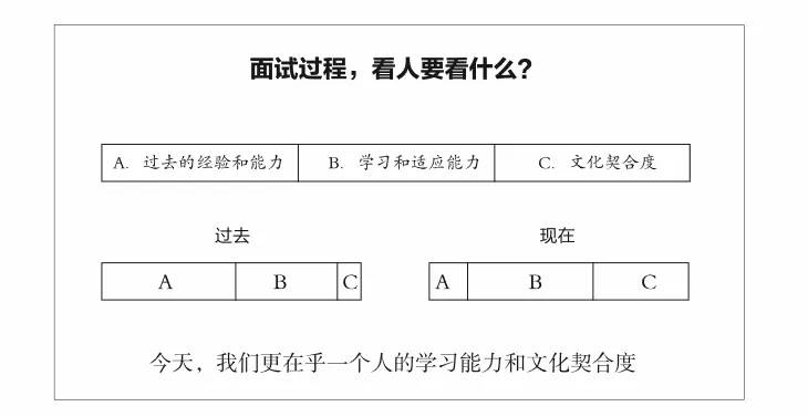 但在今天,很多内容我们并不能直观地观察到,比如候选人的文化背景、他所认同的价值观,以及他和团队之间的化学反应。