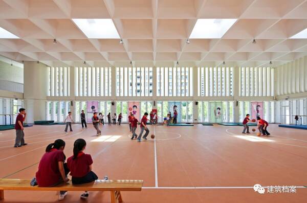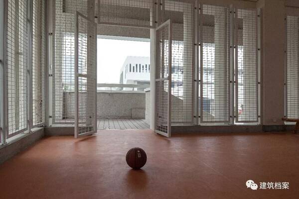 风雨操场没有设置外窗,是用细密变化的混凝土立板加金属网隔起来的,空气可以直接流通进来,这也被人质疑,他们觉得这样的设计没有全封闭的好。其实风雨操场,只要能遮住雨就可以了,参加体育活动的时候,能感受到风,享受室外能感受大自然的感觉,而且上海也不是非常寒冷的地区,体育活动完全可以接受。