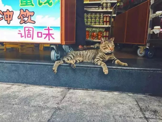 关于牌坊街的第三个充满歌舞升平气息印象的,就是人人家门口乖巧怕生的猫。