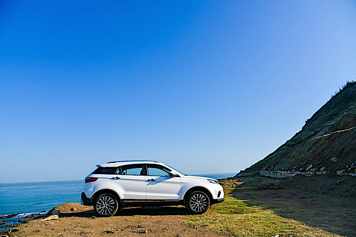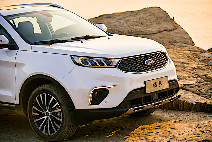 这款全新中型SUV由福特汽车与合作伙伴江铃汽车合作设计开发,在外观方面完美继承了福特SUV的基因。在车头部分,除带有“Ford”字样的椭圆形车标之外,六边形家族式进气格栅及狭长造型的LED头灯也时刻彰显着这个美国汽车品牌的印记。