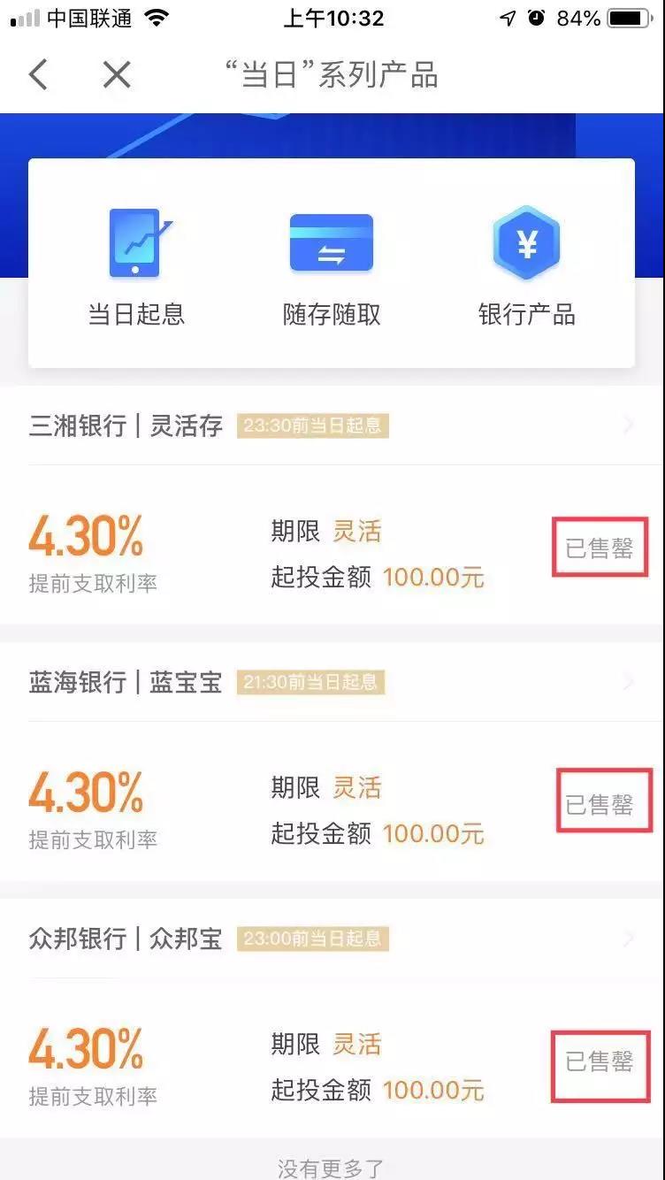 京东金融“当日系列”的产品全部改为每日限额销售,今晨至上午10点半,“当日系列”的产品已全部售罄。