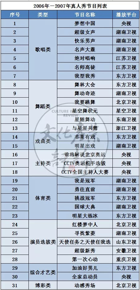 随后,各家电视台跃跃欲试,众多真人秀节目如雨后春笋般发展起来。2006年-2007年,省级电视台播放的真人秀类综艺节目超过了30个,成为了当时内地荧屏上火爆的综艺节目。