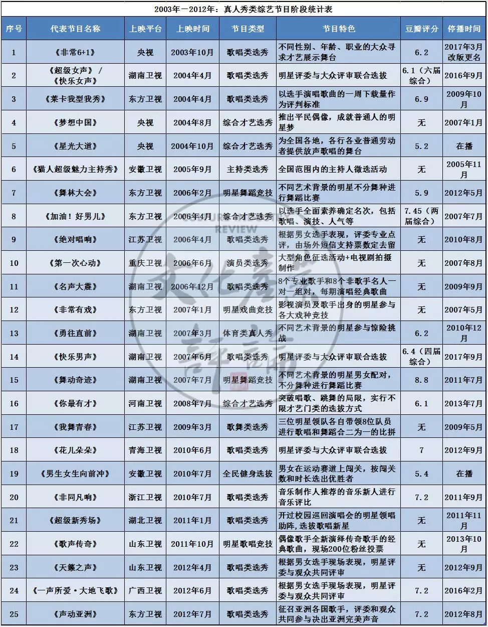但一哄而上的真人秀综艺节目被电视台大量复制、模仿以及重复上演,再加上为博收视率所做的炒作,此类节目的影响力已大不如前。这一阶段的大部分综艺节目最终退出电视屏幕,有些甚至只举办了一季便在播出当年黯然收场。