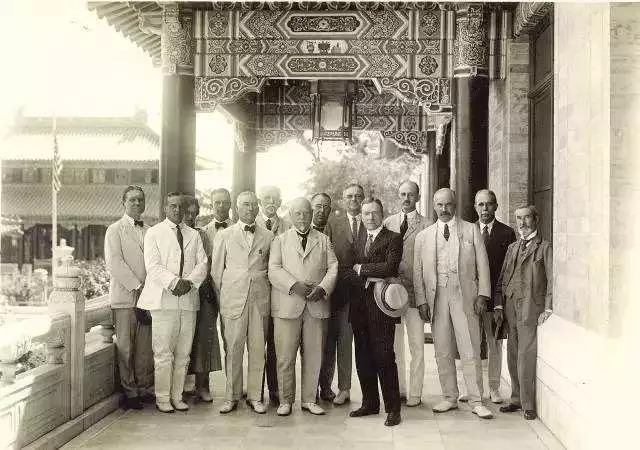 ▲ 小洛克菲勒(前排黑西装者)与协和医学院的同事们