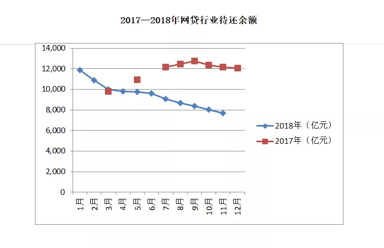 从2017年10月开始,行业待还款余额一直处于下降趋势,截止到2018年11月为止,其余额已从12340亿元将至7664元,连续14个月下降。