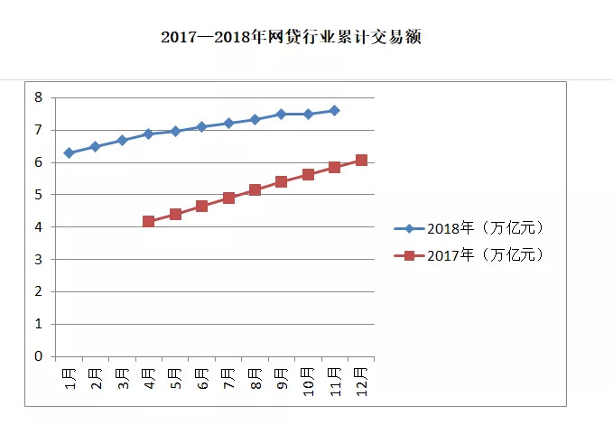 也就是说,在2016年—2017年,网贷累计交易额增加了4.1156亿元,而2017年12月到2018年11月,仅增加了1.53万亿元。