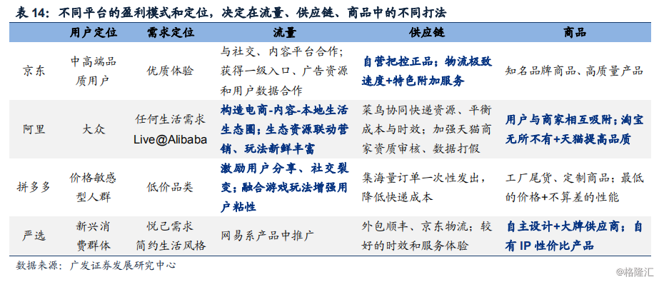 无论电商还是实体零售,商业本质依然是追求“人”与“货”的高效匹配。在行业效率不断提升、分工更细致的趋势下,不同的人货场组合更需要不同的精耕细作方式。清晰的用户与需求定位是战略正确的前提。京东物流和京东金融(现已更名为京东数科)是未来京东从零售商往服务商转型的两大战略业务,但在当下时点,其成长依然主要根植于京东零售体系的不断扩张。