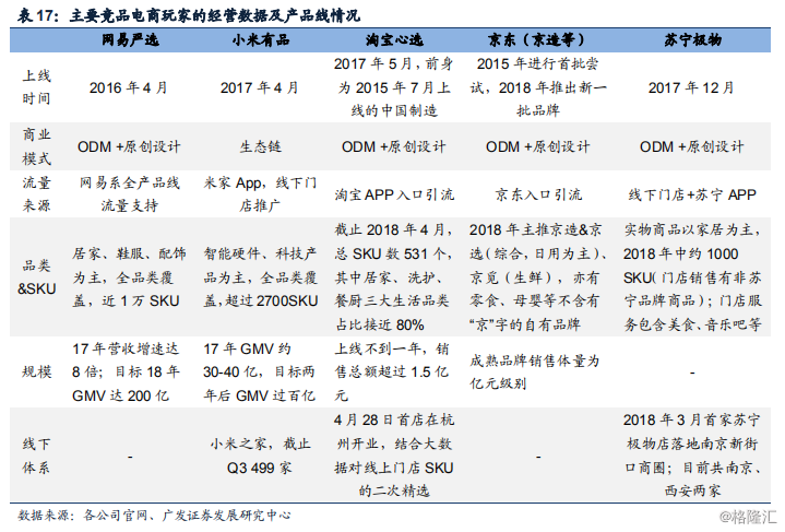 从欧美经验观察,食品(生鲜)、日用快消等品牌属性弱、偏标准化的种类是培育自有品牌的良好选择。对于电商,受制于配送方式,生鲜是较难经营的品类;日用快消、精品家居则是理想的出发点。仍借用亚马逊经验,其自有品牌中快消、杂货品牌销量远高于服饰类目,销售杂货日用的Amazon Basis约占总体自有品牌销售额的一半(根据Cadent数据,2017年亚马逊自有品牌的日用品销售规模就约在20亿美元);类似于优衣库定位的基础款服饰Amazon Essentials销售情况远远优于偏个性化的服饰品牌。 自有品牌的推广需要以用户对渠道的认知、销售规模作为基础,供应商资源则是渠道商建立自有品牌的前提。①自有品牌是渠道对产品的品控背书,是对上游优质供应商的赋能。自有品牌往往继承渠道形象,比如Kirkland继承Costco性价比&高品质特点,7-Premium创新产品的形象与7-Eleven常率先创新服务有相通之处。京东在电商中已树立良好的品质形象,是推广品质化商品的基础。②单SKU的销售规模是供应商承接定制订单的前提。京东作为第二大电商,拥有万亿GMV与3亿用户群,强大的覆盖范围是新品推广的流量池。③中国轻工业发达,聚集了大量的世界级品牌商代工厂,代工资源充足。