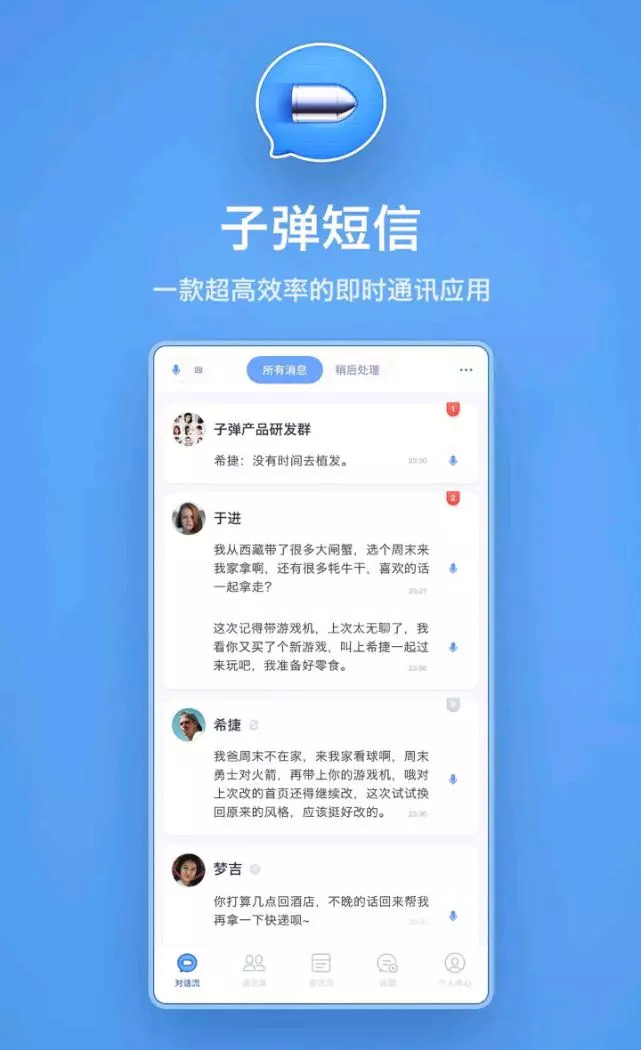 2018年9月20日,子弹短信正式上线。在上线前,人们就满怀期待,以为子弹可以颠覆微信。可是,人们下载后发现,子弹短信貌似是一个“低配版微信”。