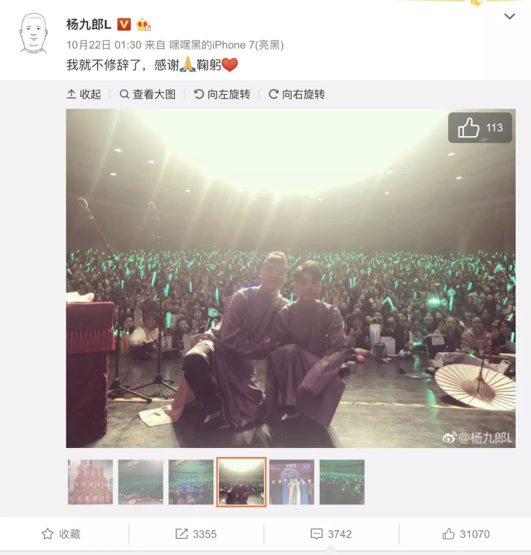 以前,只有主流的传统媒体才有发布视频的渠道与资格。现在,任何一个粉丝都拥有发布的渠道。张云雷和杨九郎演完一个节目后,会暂时下台休息,由一组助演的相声演员顶上。这时,绝大多数前排的粉丝都低着头,专注于手头的事儿:挑图、把照片从相机传到手机里、用美图软件修图,然后立刻传到微博上。粉丝放出来的照片,决不允许偶像脸上有斑点、青春痘和赘肉。