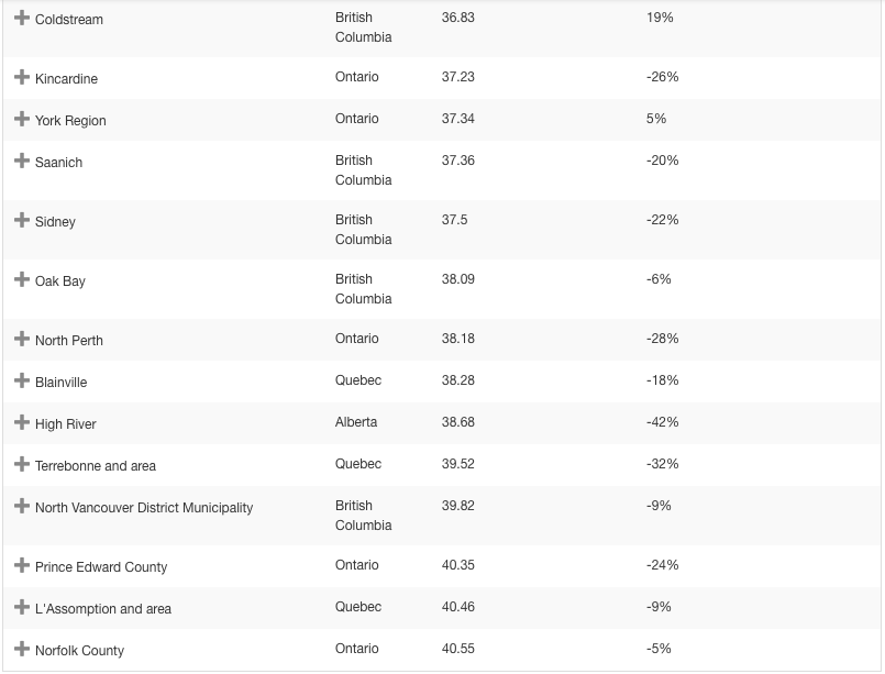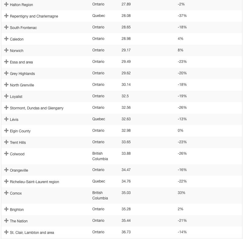 来自魁北克的7个社区和来自不列颠哥伦比亚省的8个社区也斩获了前50名的好成绩。魁北克最安全的地方是Collines-de-l'Outaouais,在榜单中排名第15。渥太华郊外的安全区域包括Val-des-Monts和Chelsea,其CSI为27.77。
