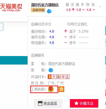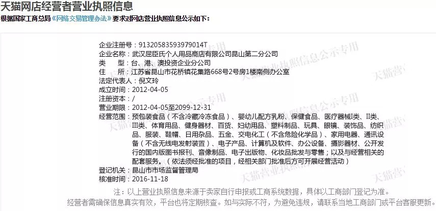 而屈臣氏官方旗舰店首页工商执照等信息公示明显,且信息齐全。