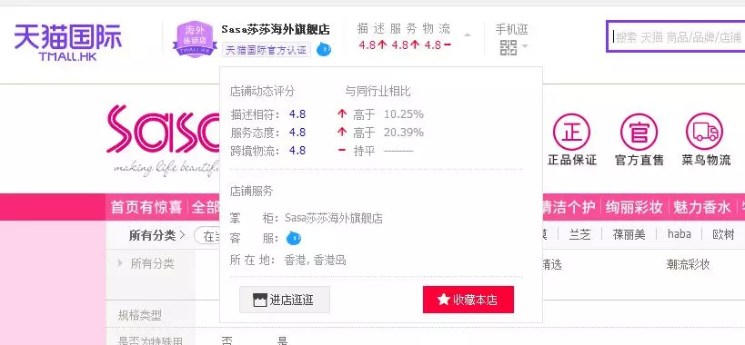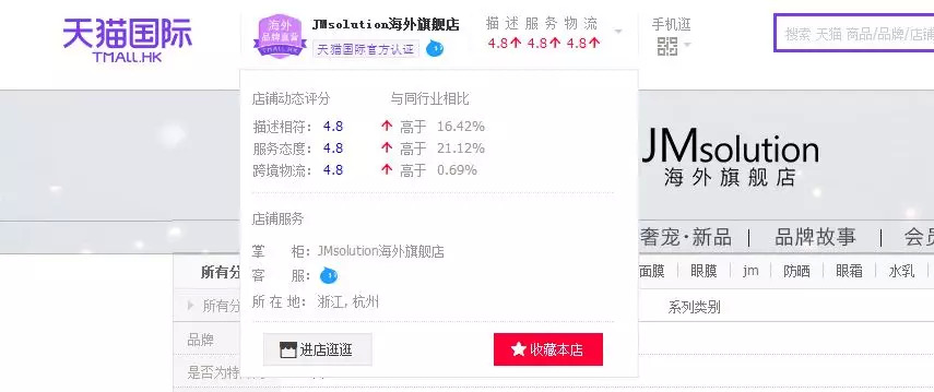 但青眼调查发现,不管所在地是在中国地区还是境外,目前天猫国际中大批海外旗舰店都属于“信息未公示”状态,如“Sasa莎莎海外旗舰店”“JMsolution海外旗舰店”“Jayjun海外旗舰店”等。