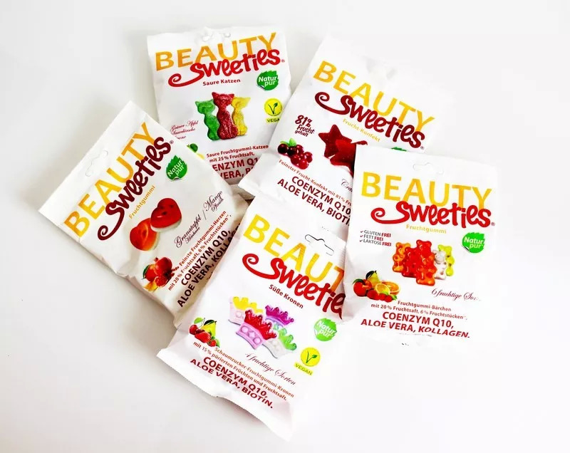 Beauty Sweeties是德国一家素食橡皮糖品牌,产品含有生物素(维生素B群之一)、芦荟和辅酶Q10(一种有利于心脏健康并且可能具有抗疲劳功效的抗氧化剂)。