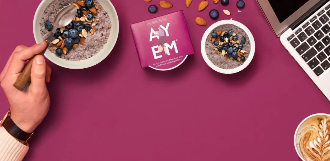 达能推出的AYEM蓝莓薄荷早餐碗,是一款易食、低脂、牛奶蛋白基的早餐碗,含有15 g的蛋白、250 mg的DHA Omega-3、水果和薄荷,并富含维生素D。