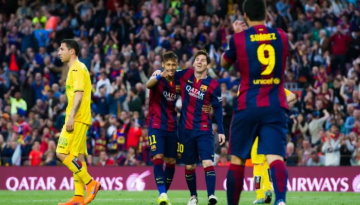 之后的比赛,只剩下了玩耍。布斯克茨也下去了,阿尔维斯也不太跑得动。反而是苏亚雷斯活跃了,和内马尔不断左路配合。内马尔仿佛跑车,穿插不息,而且起速的瞬间快得匪夷所思。他和梅西都面临对方双人夹击的待遇,但梅西的选择常是横传内切,内马尔会执拗地看线路,然后强突,或者弧度内切。