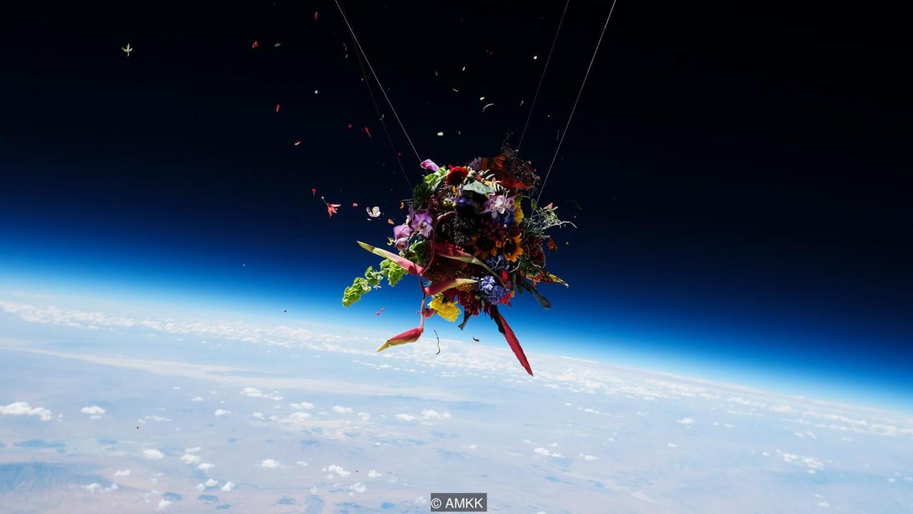 2017年,东信康仁把艺术史中标准静物图的主题——花朵送到了大气层的边缘。他的作品并不是永久的,也正象征着宇宙中万物的脆弱和短暂——甚至连我们生存的地球也是如此。艺术家对太空的探索又一次对应着我们在地球上的生活。