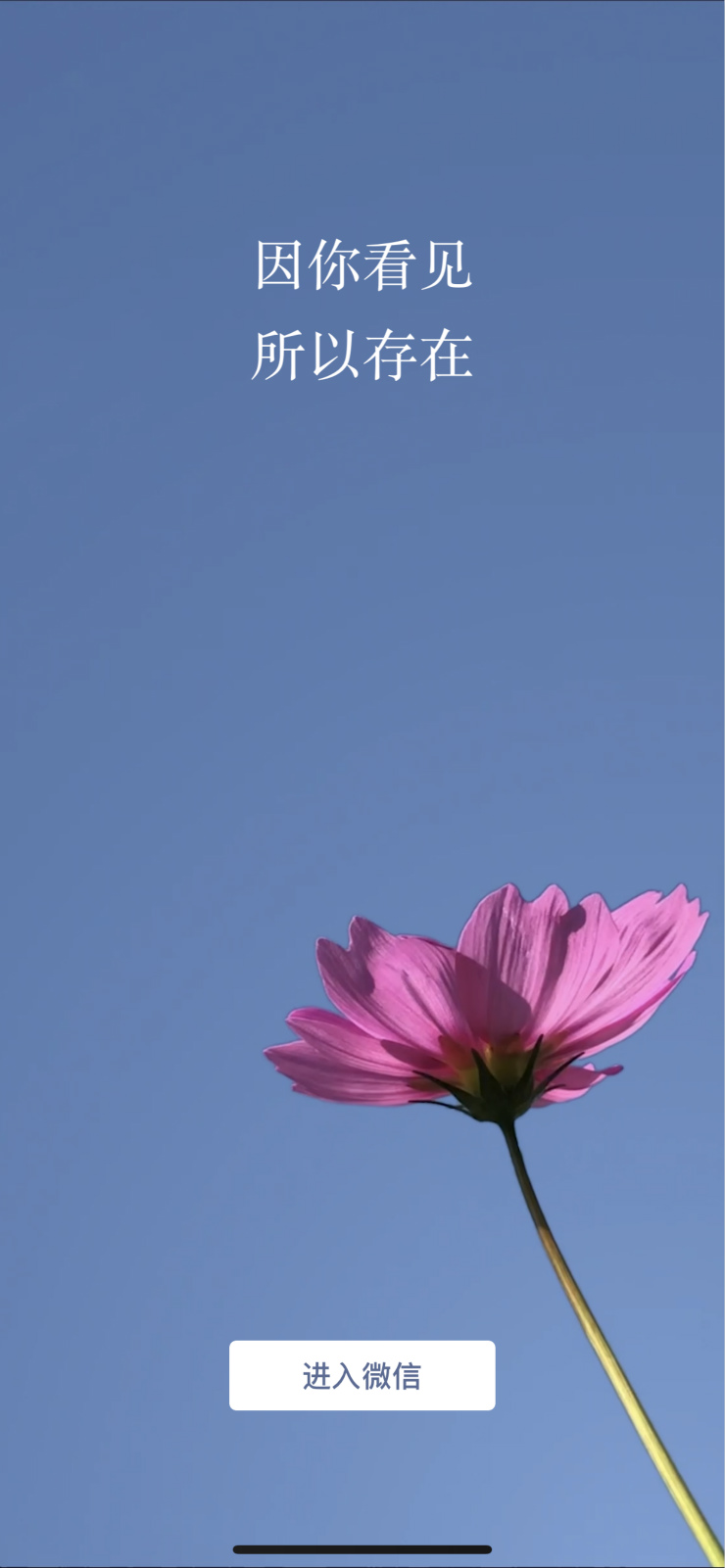 更新后的首次启动背景在蓝天的映衬下居中写了两行大字:“因你看见 所以存在”,再加上右下角被风吹动的一朵小花,我心想“微信你的审美果然变了”。