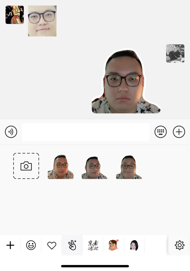除了主界面,在聊天过程中,你可以录制并发送属于你自己的表情包了,甚至想加行字的位置微信都给你留好了。